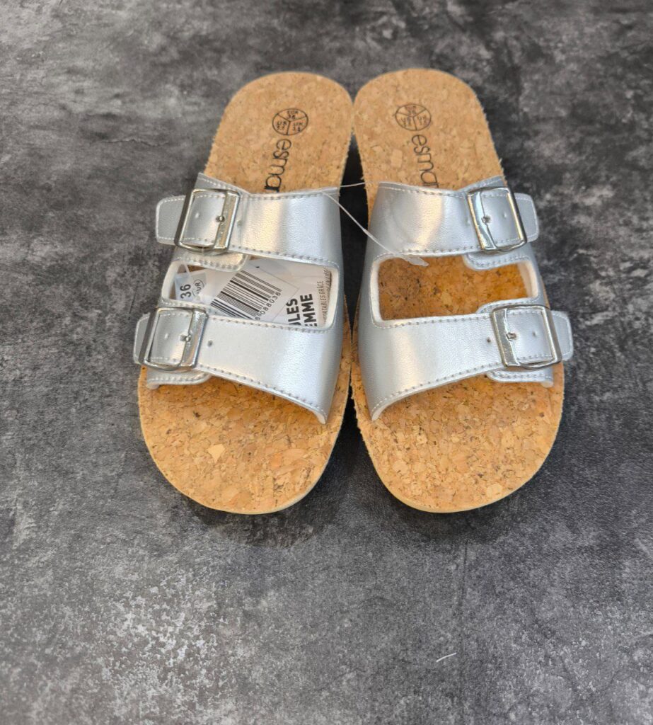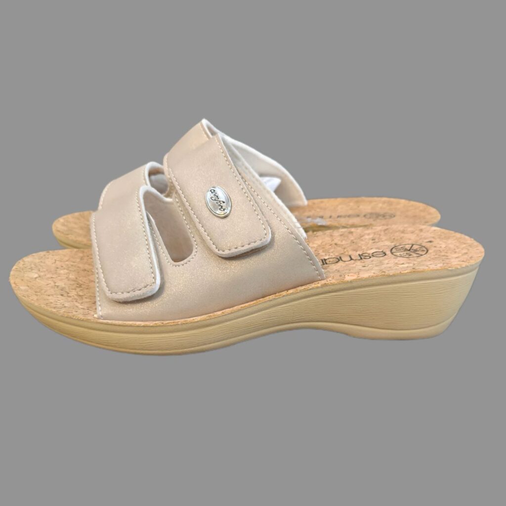 صندل چرم طبیعی زنانه برند ESMARA{صورتی سفید}