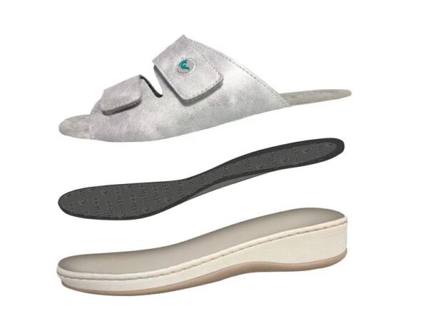 صندل طبی و چرم طبیعی زنانه برند ESMARA{نقره ای طرح دوم سایز37}