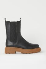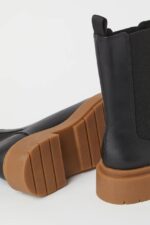 پوتین زنانه برندH/M{ مشکی بغل کش زیره نسکافه ای}